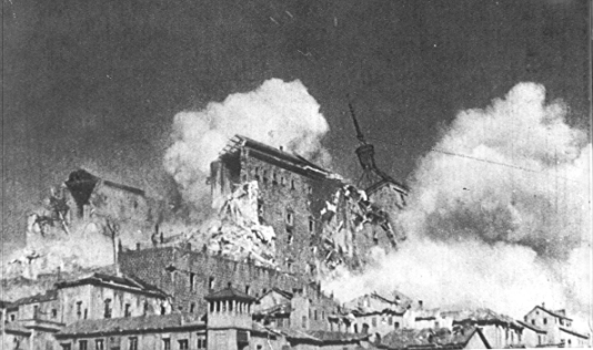 Uno de los hechos más trascendentes de la guerra civil española, tanto por su significado, como por el heroísmo que en el hubo, fue el asedio del Alcázar de Toledo. Pese a que Toledo no era un punto estratégico demasiado valioso desde el punto de vista militar; la toma del Alcázar pronto se convirtió en algo fundamental para las fuerzas republicanas, que intentaron buscar en ello un golpe de efecto propagandístico. Pronto, todo el mundo estuvo pendiente del desarrollo de los acontecimientos de esta operación. La tenaz resistencia de sus defensores, hizo que la publicidad del asedio se volviera contra los republicanos, cosa que supieron aprovechar los nacionales para ganar una gran batalla moral en los inicios de la guerra, que sirvió para llenar de motivación a sus filas. No les importó tener que desviar las tropas que iban a atacar Madrid, perdiendo un tiempo que habría sido precioso para ocupar la capital en el mismo año 1936. Sabían que si liberaban el Alcázar, ganarían muchos enteros ante la opinión pública, y, además, harían bueno el sacrificio y la constancia de sus defensores, encabezados por el Coronel de Infantería Don José Moscardó Ituarte.